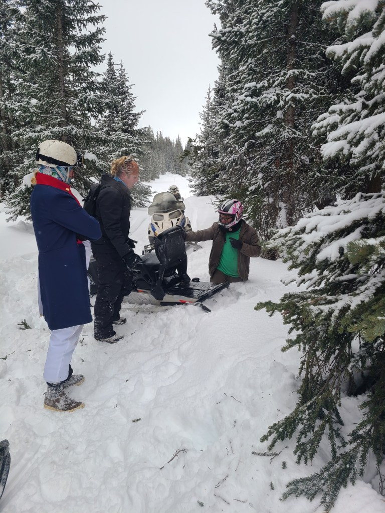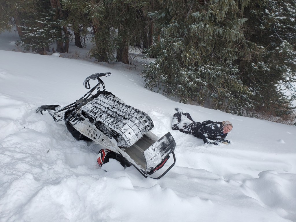 The trail itself has a big variety as well so it’s perfect for basically whatever pace you’d like to keep. Of course, since we had done it before we were overly cocky and did some of the “non-trail” portions and got stuck more often than we didn’t. Keep in mind, snowmobiles are heavy and getting unstuck can be a bit of a pain. Seriously, that snow can drop off quick. That said the best way through if you are unsure is to just hit the gas. Slowing down makes you MUCH more likely to get stuck which is a mistake that was made. So hears a small montage and pics of some of the times we got stuck, enjoy! (Sorry for vertical video, hard to do with gloves on)