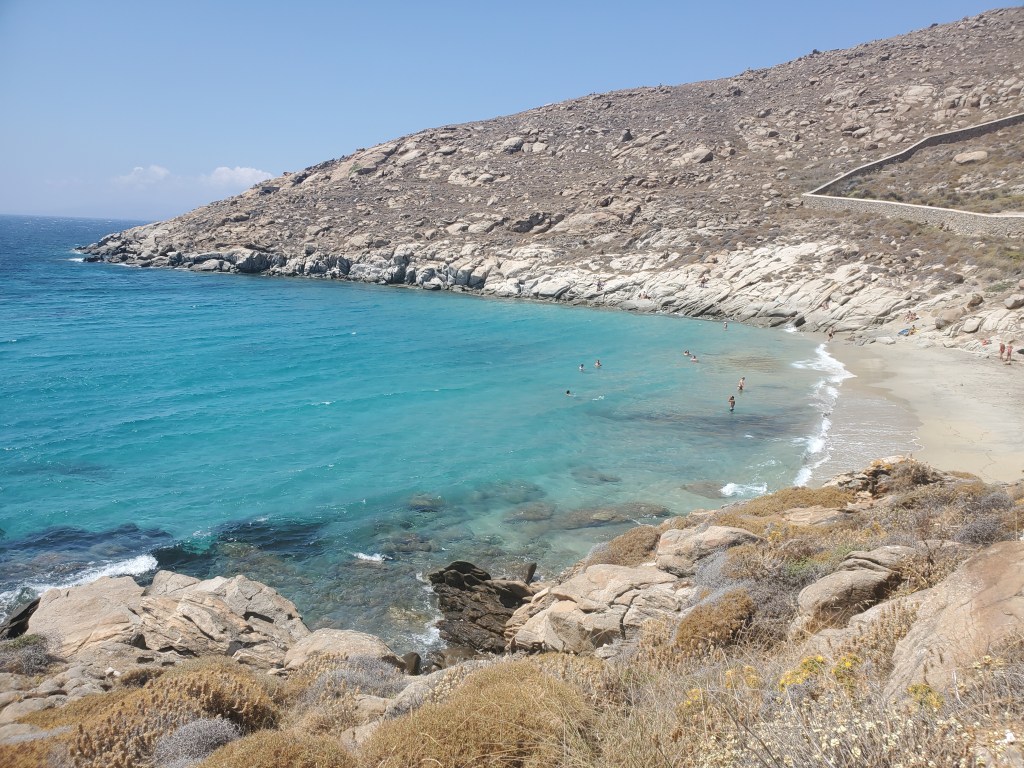 To get access to the beach you will have to climb down some rock but it isn’t very difficult. Also it is worth noting that this beach, and really all the beaches mentioned, are nude friendly. That wasn’t a huge factor in this endeavor but it does seem like something worth warning about. The beach itself is actually not very big and had more people than the larger Peralia Megali beach closer to town that seems more “mainstream and accessible.” Though the water was very clear and the waves crashing on the nearby rocks was something I could enjoy for some time.