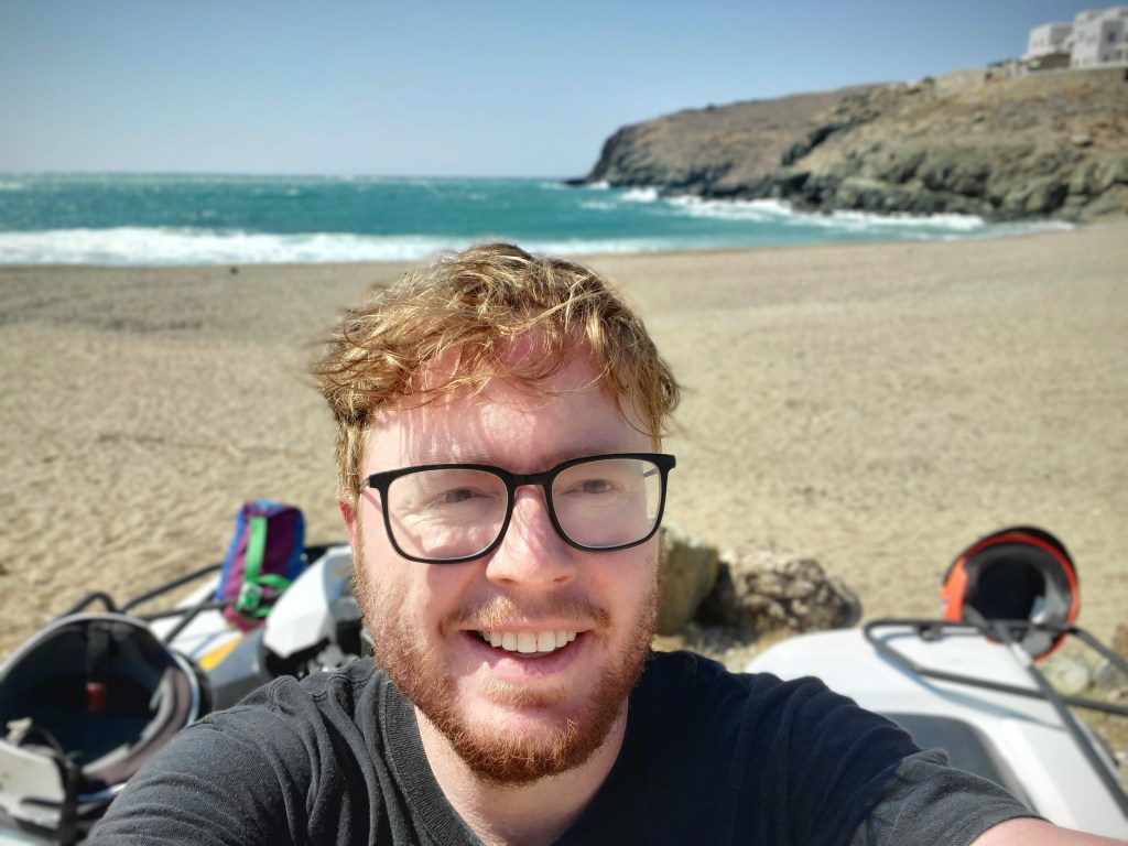 The road to Vatheia Lagada was similar in its aesthetic beauty and even more difficult in its navigation. This one was actually quite confusing to navigate to. I ended up at one point on some sort of restricted military road with a man waving his hands at me and likely calling me an idiot. Plus, as I got closer to the pin on my map where this beach supposedly was, the time to destination kept increasing. I suspected this was because the above article said this beach was only accessible via ATV and I was about to do some offroading. However, as i got closer the offroading just…didn’t happen. In fact what I found seemed to be more of a very new small road leading to some resort villas. My initial thought was that this beach had been developed since that article and a road added. After further investigation it turns out I had navigated wrong and was on Paralia Pano Tigani beach instead, just south of it.